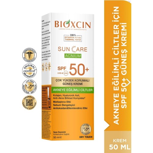 Bioxcin Acnium Akneye Eğilimli Ciltler için 50 ml 50 Faktör Güneş Kremi